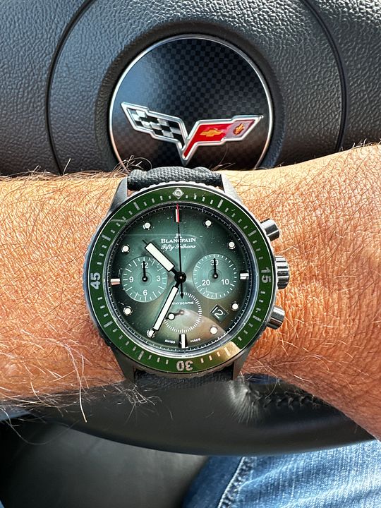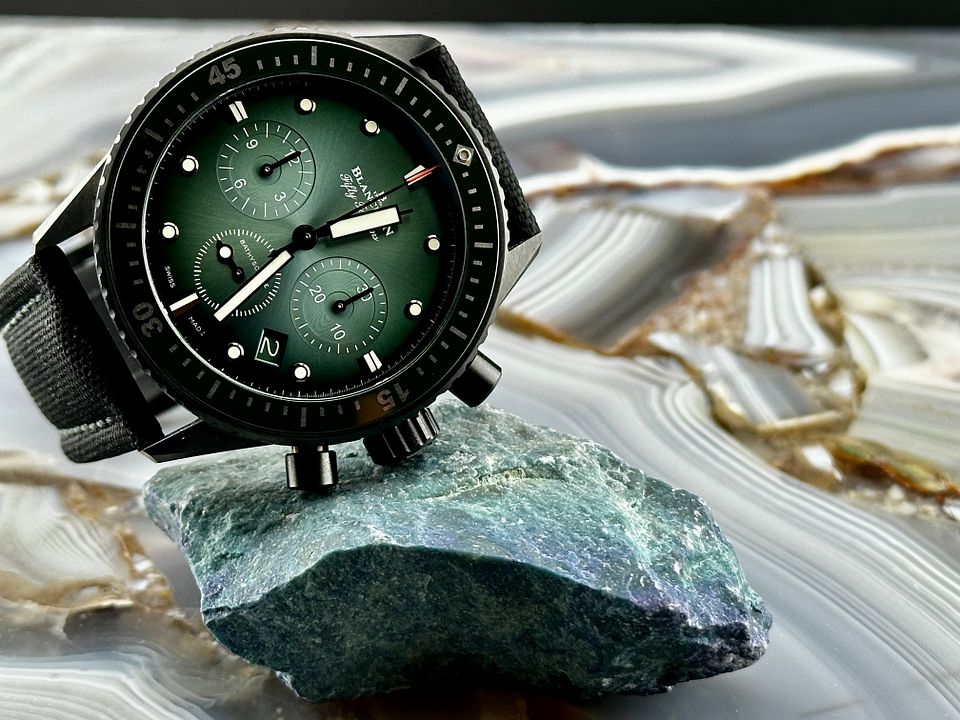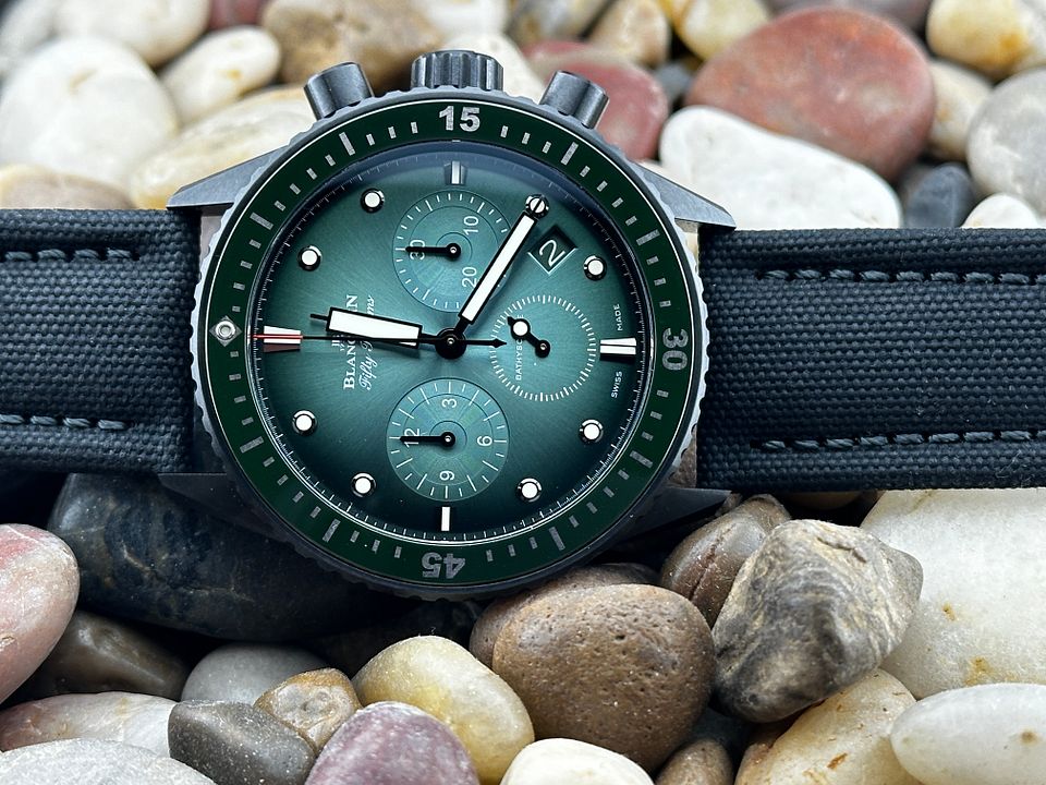Offering for sale is my green dial Blancpain Bathyscaphe Chronograph, reference 5200 0153 B52A.