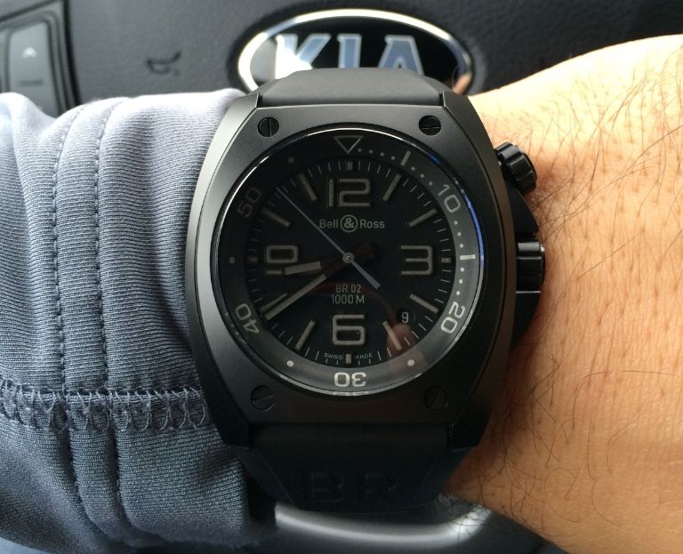 I am offering up my Bell & Ross BR02 Phantom. It was purchased at an authorized AD back in October 2014 as a trade-in. I comes with B&R square box, blank warranty card and watch. Condition is very good with only a very small nick in the crystal around the 2pm mark which was there when I purchased it. I'd rate it 94%. Few small rubs marks in the PVD. Water resist to 1000M. More pics avail to interested parties. References on eBay under same user name as I haven't sold on here.