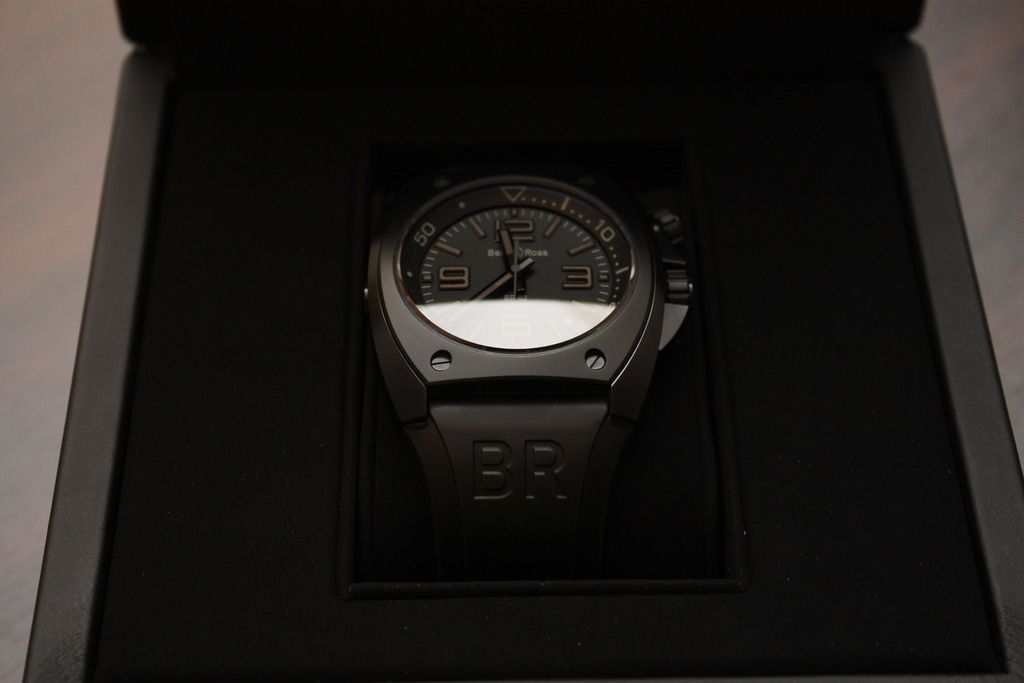 I am offering up my Bell & Ross BR02 Phantom. It was purchased at an authorized AD back in October 2014 as a trade-in. I comes with B&R square box, blank warranty card and watch. Condition is very good with only a very small nick in the crystal around the 2pm mark which was there when I purchased it. I'd rate it 94%. Few small rubs marks in the PVD. Water resist to 1000M. More pics avail to interested parties. References on eBay under same user name as I haven't sold on here.