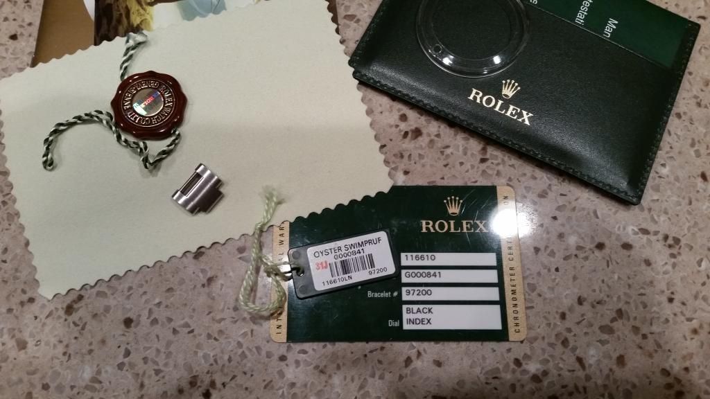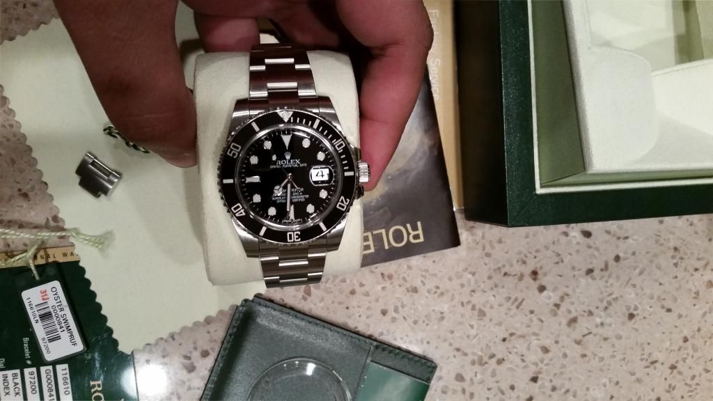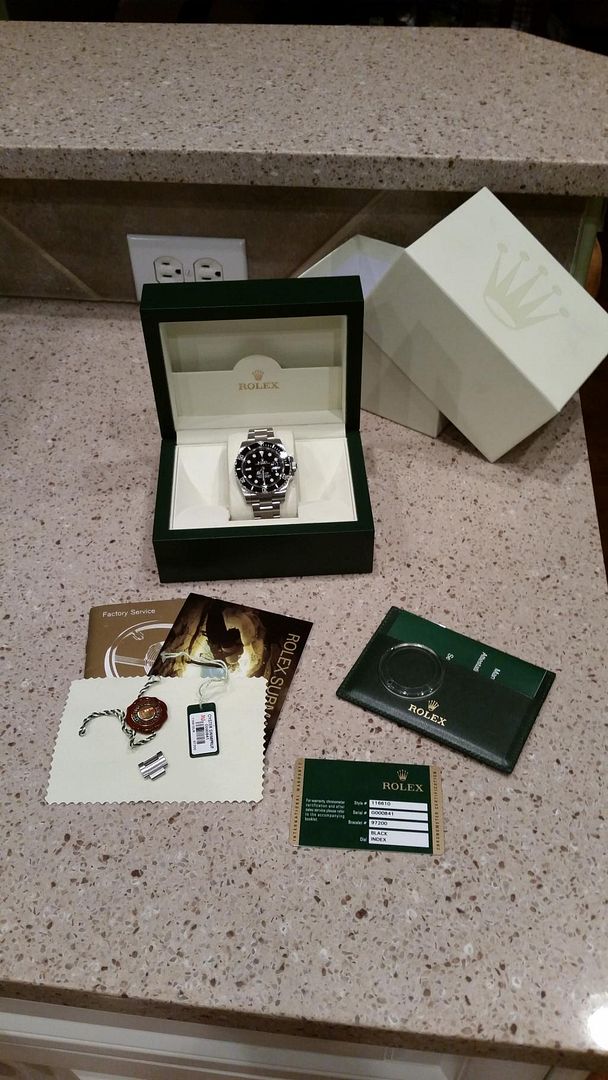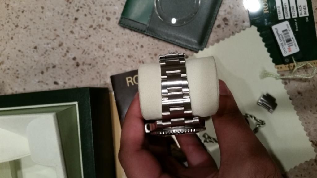 Very good condition Sub with all boxes and papers, tags, bezel protector, etc. Keeps dot on time, no issues. Ceramic is pristine. Bracelet has a bit of desk diving wear. Polished parts on side of case have minor imperfections but nothing that cannot be buffed (never polished previously).
