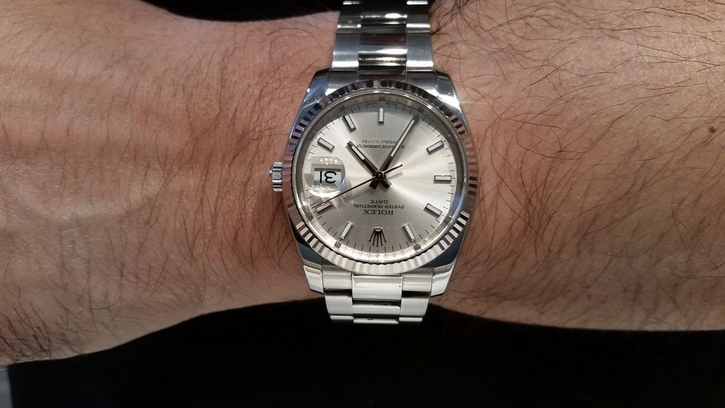 The watch is in 85%+ condition conservatively. The watch does not come with original box or papers but has an Jewellers Appraisal. I had the watch opened by an authorized rolex dealer who verified everything is 100% Rolex. Bracelet will fit upto an 18" wrist.