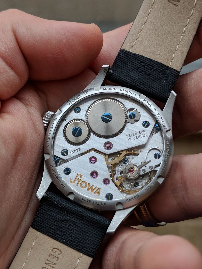 Made in Germany. Decorated Unitas 6498 manual winding movement. Gorgeous heat treated blue hands.