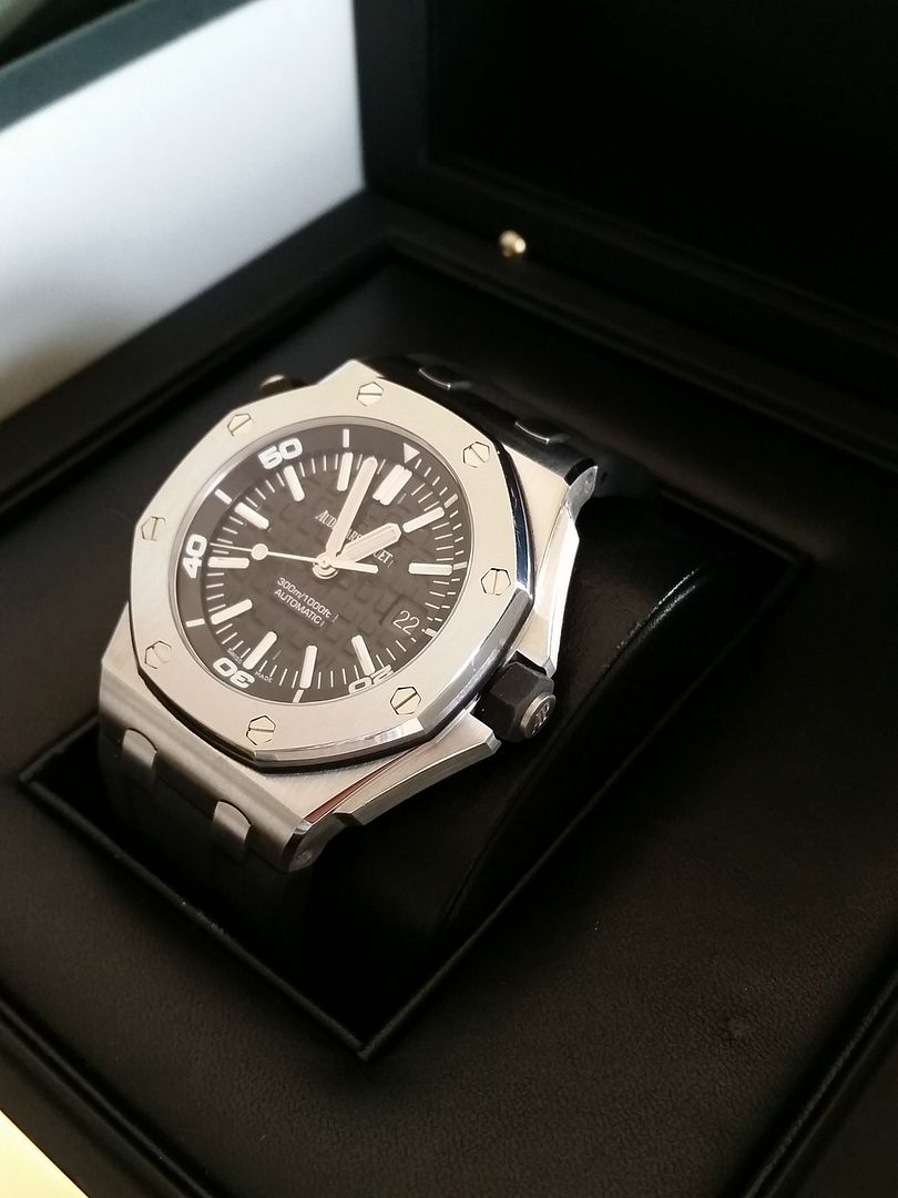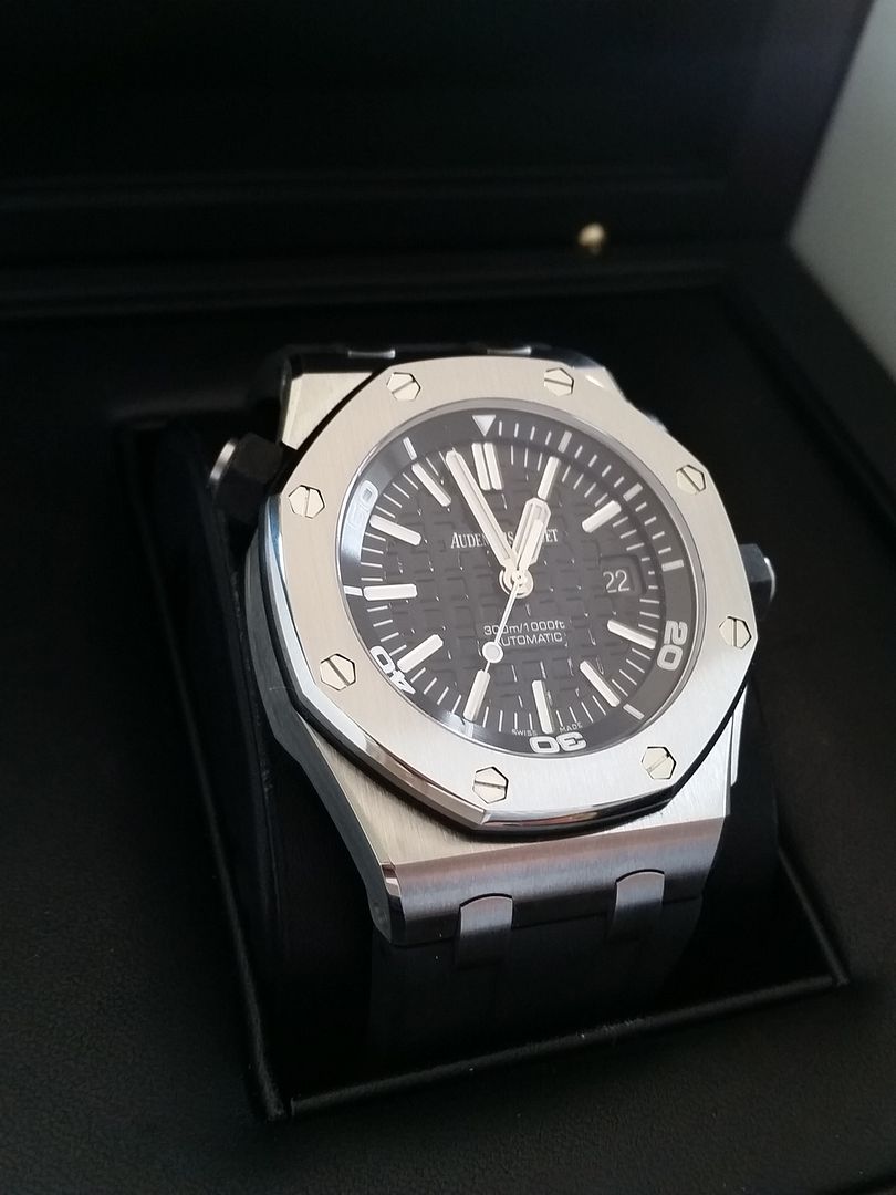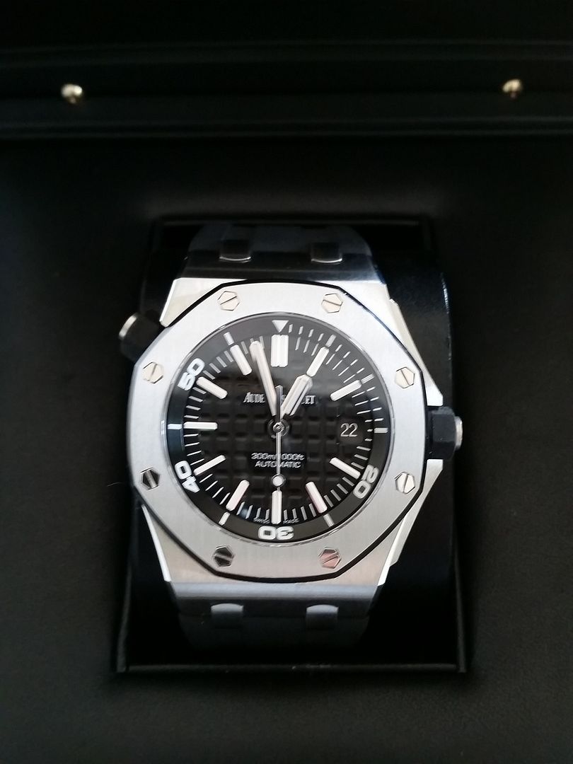 Up for sale is my VG/EXC condition ROO AP Diver. This watch is absolutely stunning, comes with all new style papers, and was bought from local CANADIAN AD in March 2015 (TONS of warranty left). Comes with all boxes, papers, tag, etc. No major gouges just minor wear from careful use, please see pics for more detailed condition.