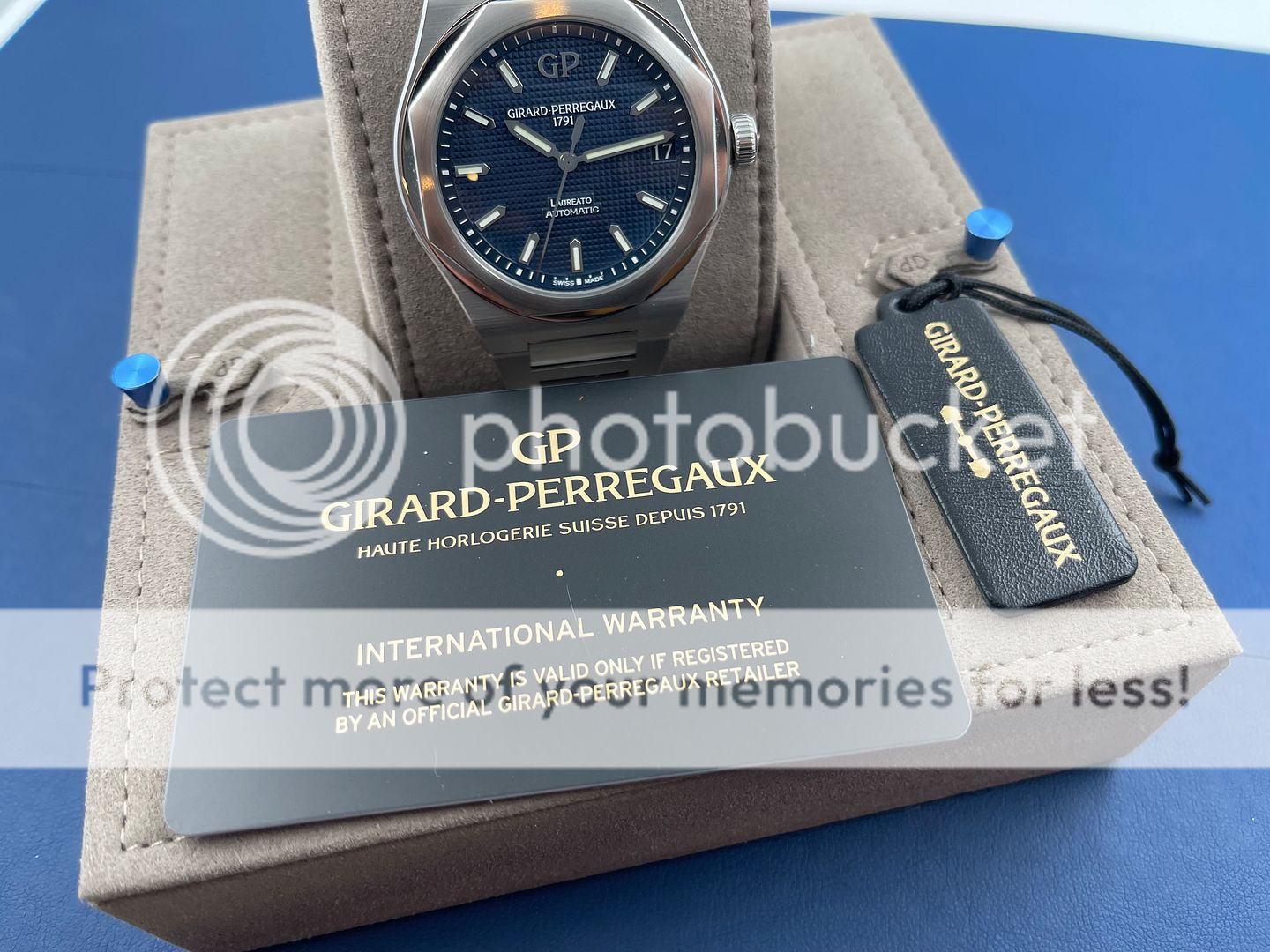 FSOT GP Laureato 42mm in BLUE DIAL! Simply clean and super comfy to wear! Watch was purchased at Canadian AD late in April and was worn couple of times! Watch still has sticker on the back and in very good condition ! Watch comes complete double boxed, warranty card and hang tag! Blue dial is the most desired out of the three available (black, white and blue) and most people ask for premium on this watch! I'm offering this watch at $12850 shipped and insured compare to retail $13900 plus 13% tax which is $15707 and not easily available at ADs