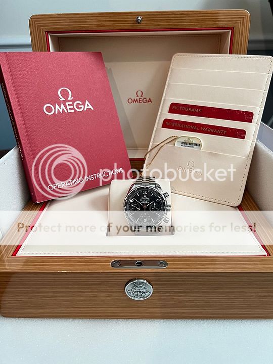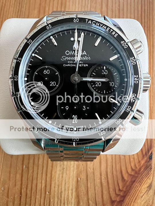 Looking to sell my Speedmaster 38 with a black dial and circular subdials. I am the second owner, as the watch was purchased from a reputable seller on this forum in early 2019. Original purchase date was 11/2018 from an AD in Ontario. Watch was worn regularly, as evidenced by the light surface scratches. No major dents or cosmetic damage.