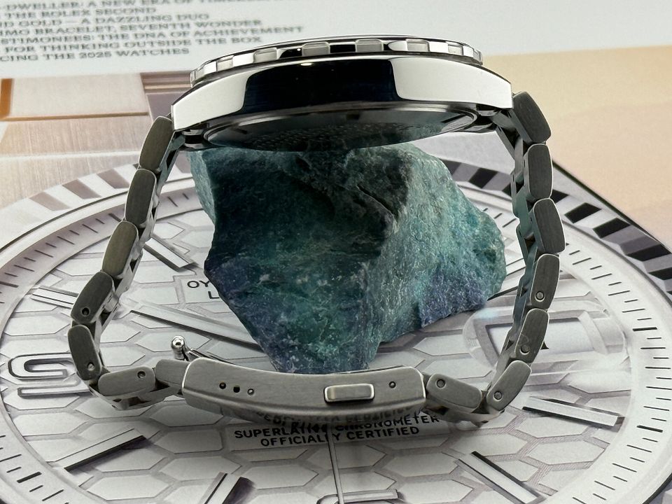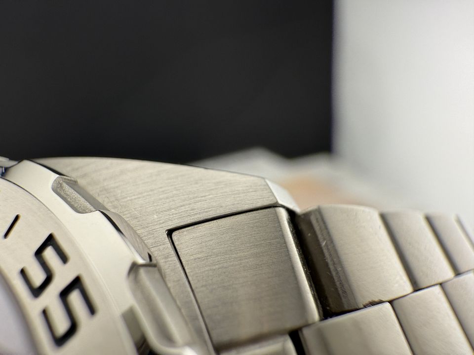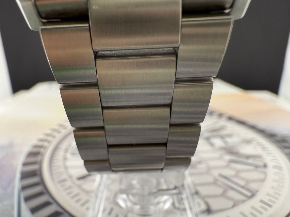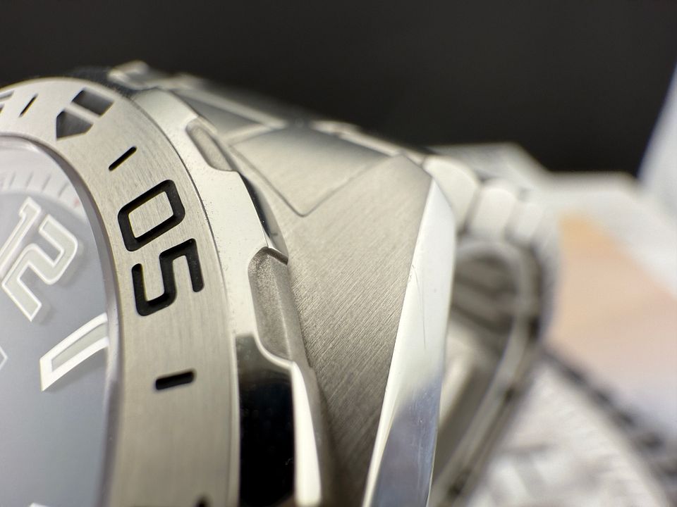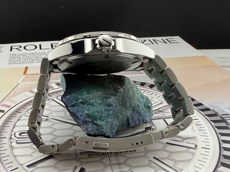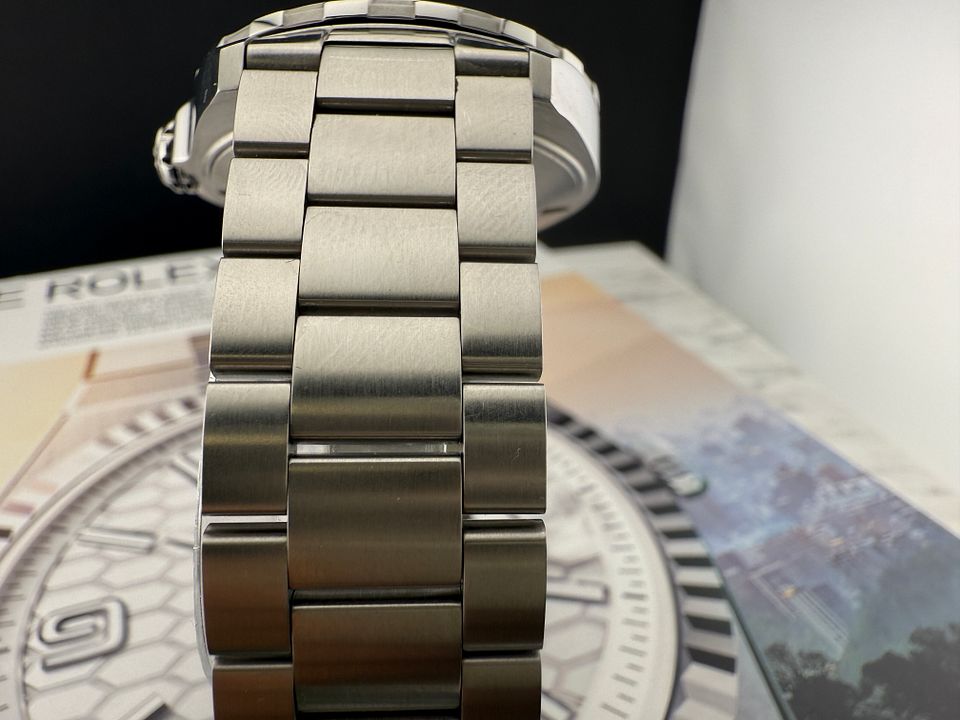 A classic sports watch with 60-minute unidirectional turning bezel and permanent second indicator at 6 o’clock. Powered by the robust Calibre 6 automatic movement, the 43mm case and the bracelet and folding clasp are in brushed and polished finished stainless-steel.